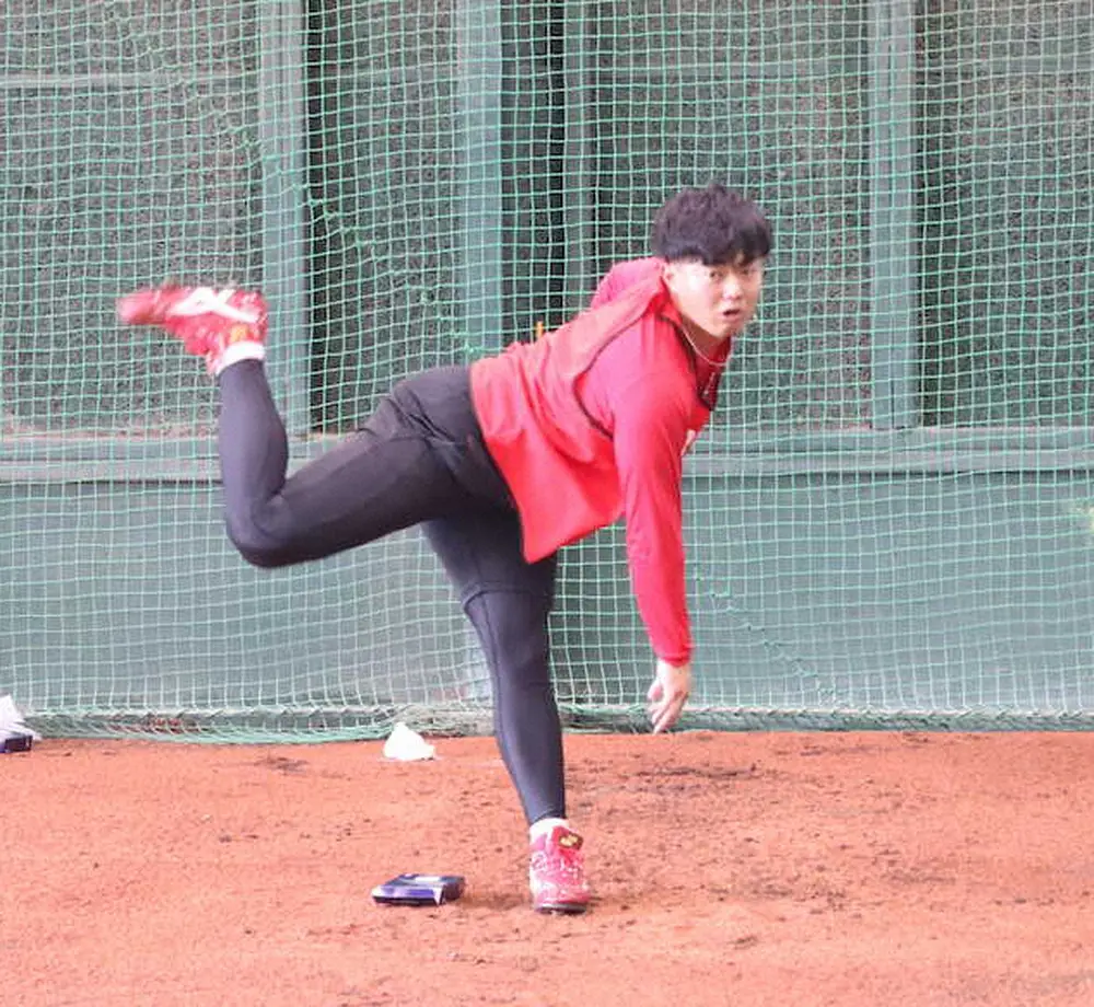 「こっち(広島)に来てから傾斜で投げるのが初めてだったので、飛ばし過ぎず、マウンドの感覚を確かめる程度で投げたつもり。6、7割の力で軽く投げた」