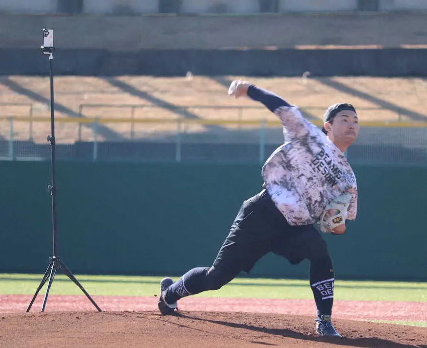 ヤクルト・星が宇都宮市の清原球場で自主トレを公開した。「トラックマン」の数値を確認しながら一球一球丁寧に投球練習。「リリースの角度や自分の体がどうなっているのかを確認しながら。精度や質をもっと上げたい」と意欲的だった。