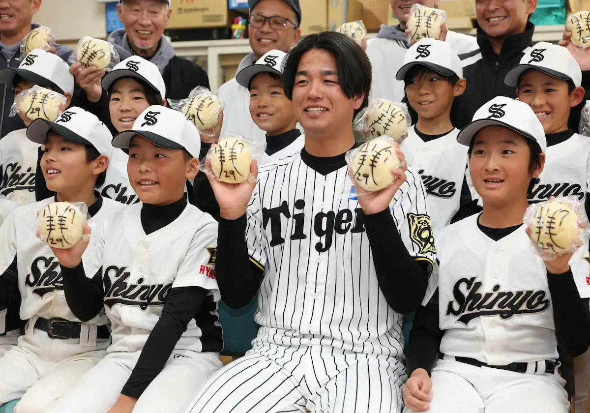 31年を迎えた「1・17」の朝、阪神・高橋遥人がやって来た。真陽少年野球部の小学生32人への野球教室と「夢授業」で先生役を務めた。