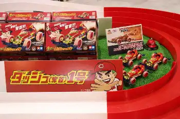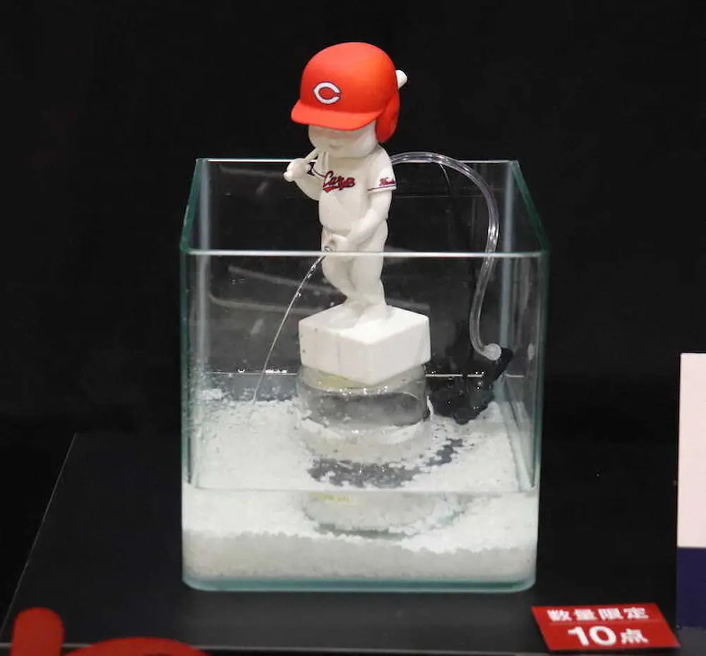 例年、奇想天外なグッズを売り出しているが、今年の目玉の一つとして、人形焼きをモチーフにした300点限定「ファビあんキーホルダー(税込3000円)」が発売予定。同商品を目にしたファビアンは「おもしろい。(ビジュアルも)格好いいね」とご満悦だった。また、ダッシュ(奪首)1号と名付けられた数量限定のミニ四駆(税込1900円)の他、10点限定の「カープしょんべん小僧(税込3万5000円)」などのユニークな商品が並んだ。新商品は31日からマツダスタジアム内のグッズショップ、公式サイトにて販売を開始する。