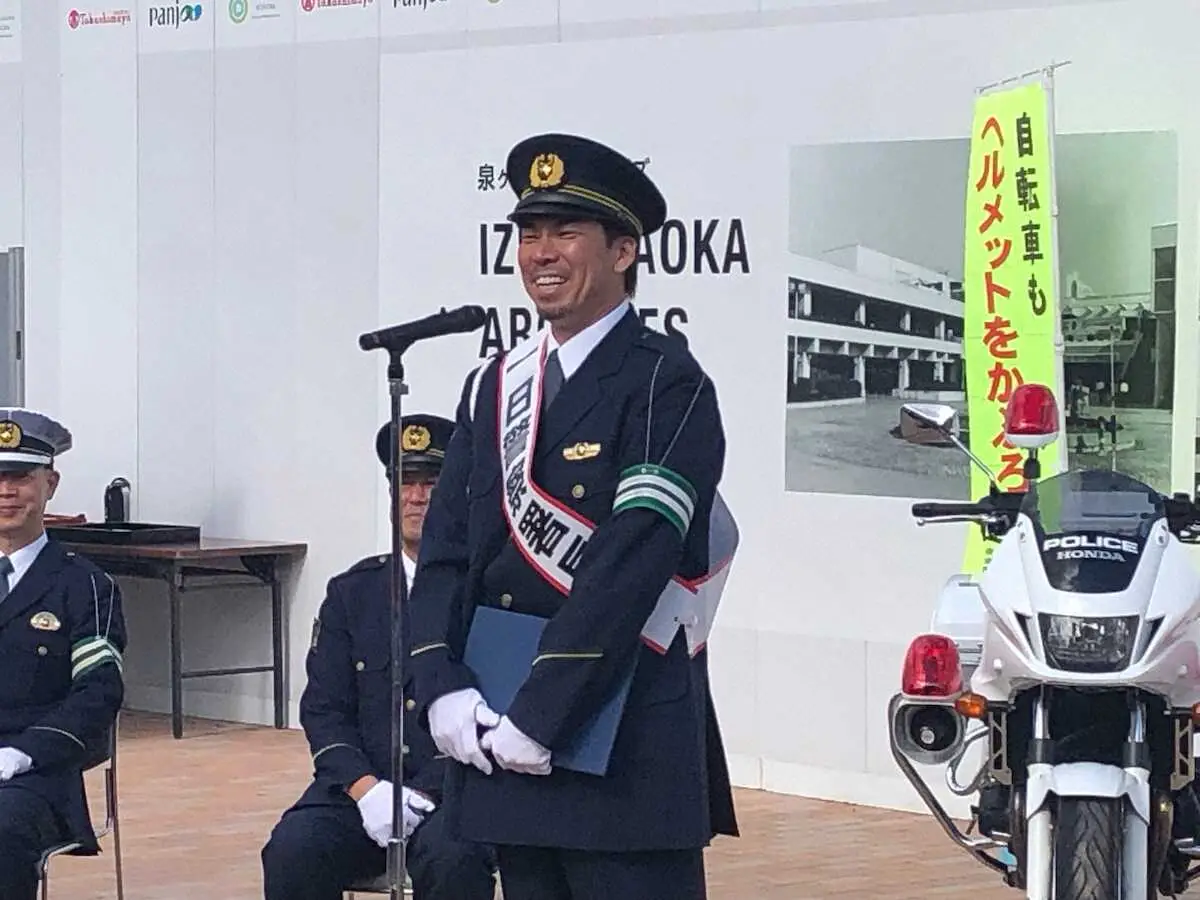 大阪で一日署長を務めた楽天・前田