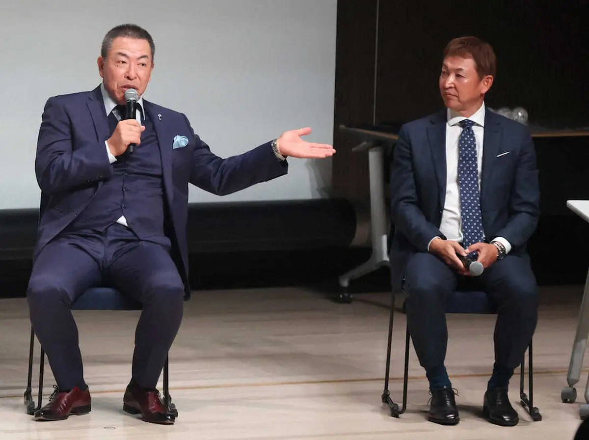 広島遠征時には混雑を避けて遠回りするチームバスを待ちきれず、徒歩で広島市民球場から近隣のホテルまで帰ったことも。井上監督は「立浪さんが予約した店の時間があまりなかったんでしょうね。歩いて帰るぞって。カープのユニホームを着たファンがワーってくるところを逆流して、すみません、すみませんって感じで。選手が2人、鮭が古巣に遡るってあるでしょ。あんな状態で帰った。“今の立浪じゃねーのか“って言われても関係なし。ご飯のために歩いて帰った」とアクションを交えながら披露した。立浪氏も「それは覚えてる」と懐かしそうだった。