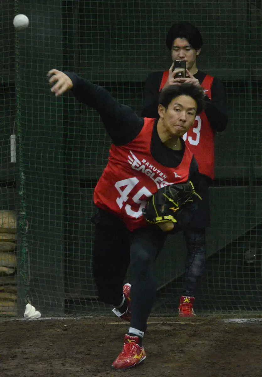 楽天ドラフト6位・九谷瑠投手(王子)が28日、「楽天モバイル 最強パーク宮城」の室内練習場でブルペン入りした。