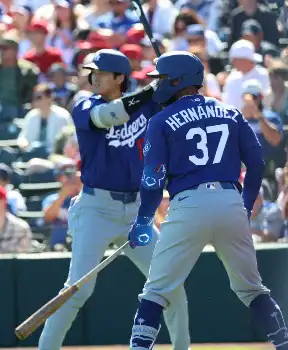 <エンゼルス・ドジャース>大谷(左)と並んで素振りするT・ヘルナンデス(撮影・須田 麻祐子) Photo by スポニチ 「今年も守備が…」左翼転向テオがまさかの落球…3安打も失策に「あぶなっか… ギャラリーで見る この記事のフォト 2026年02月22日の画像一覧 もっと見る 2026年02月22日の画像をもっと見る