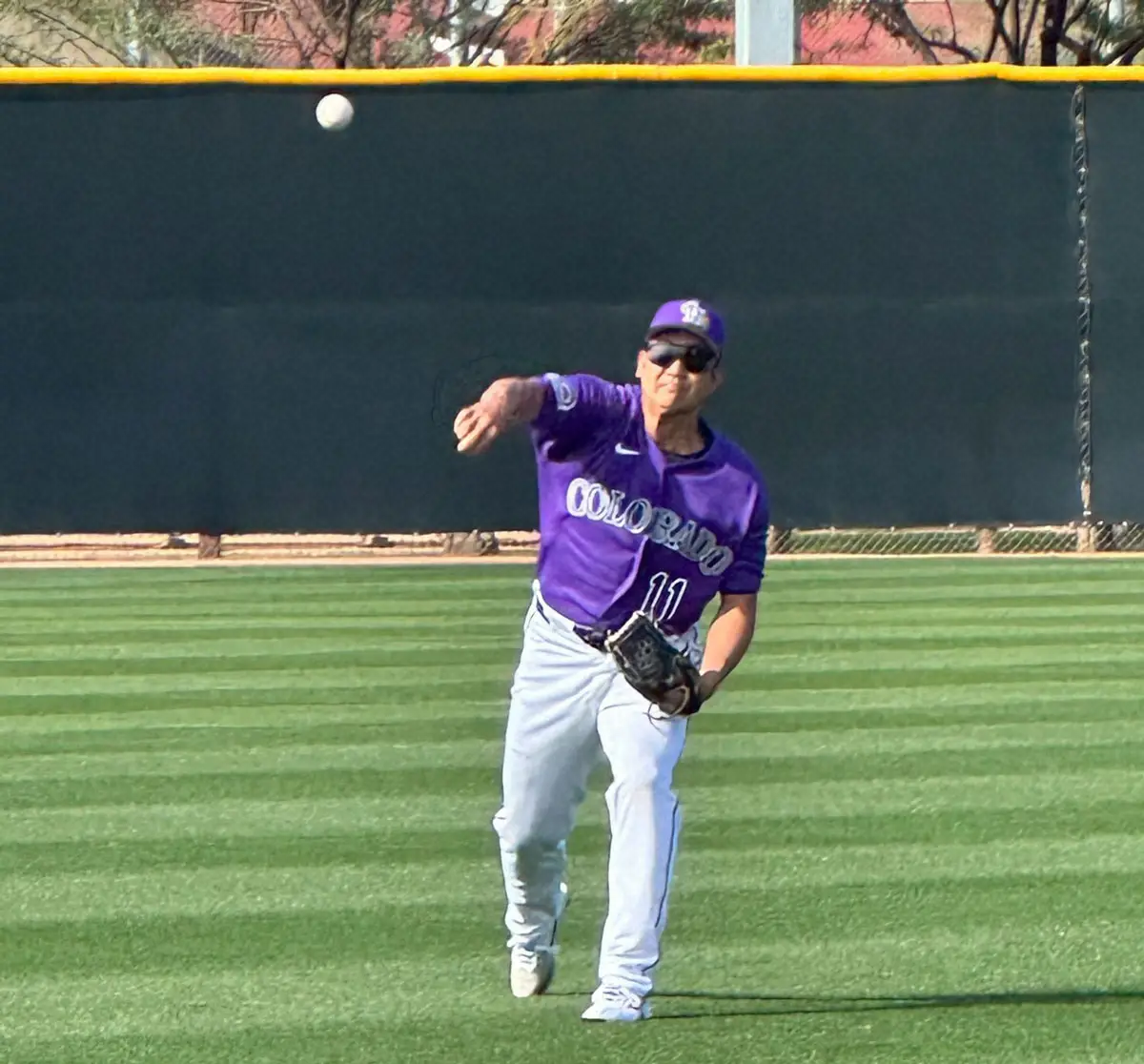 ロッキーズの菅野がメジャー組では一番乗りで宮崎入りした。