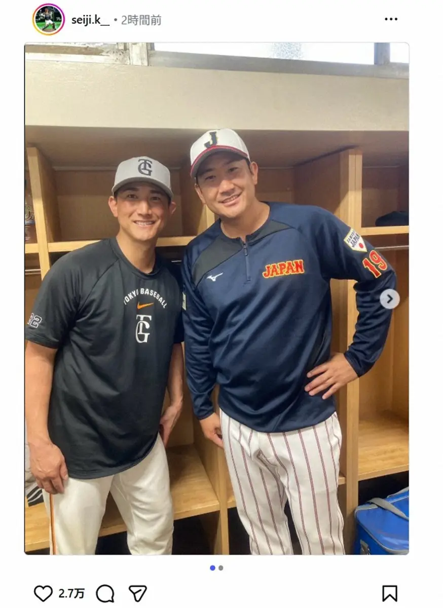 巨人の小林誠司捕手(36)が22日、自身の公式インスタグラムを更新し、ロッキーズの菅野智之投手(36)との2ショット写真を公開した。