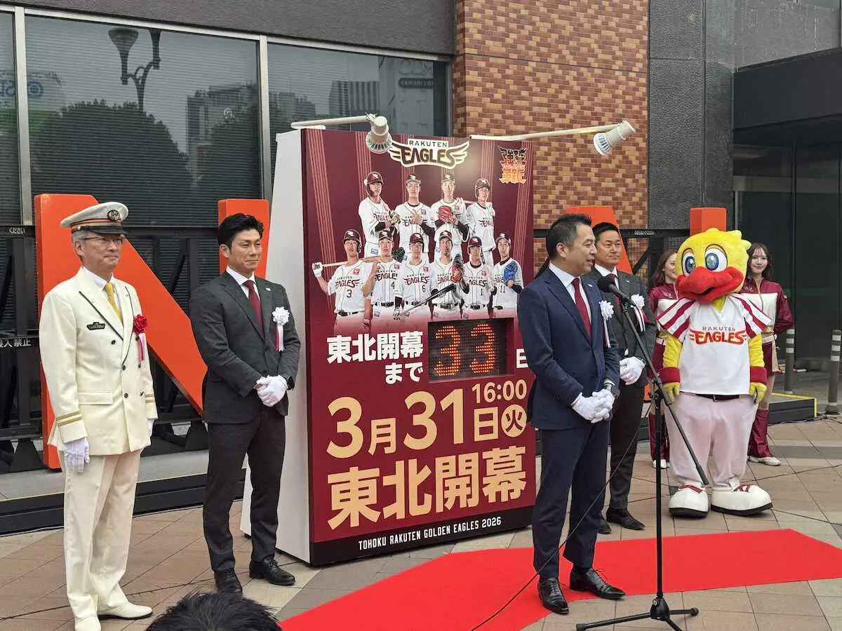 楽天が26日、仙台駅で開幕カウントダウンボード除幕式を実施した。今季は3月27日に敵地・大阪でのオリックス戦で開幕。同31日のソフトバンク戦で本拠地開幕を迎える。