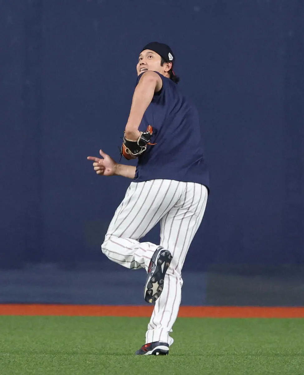 【侍ジャパン】大谷翔平が「ムリ~」と絶叫 外野守備で誠也と捕球を繰り返しリラックス