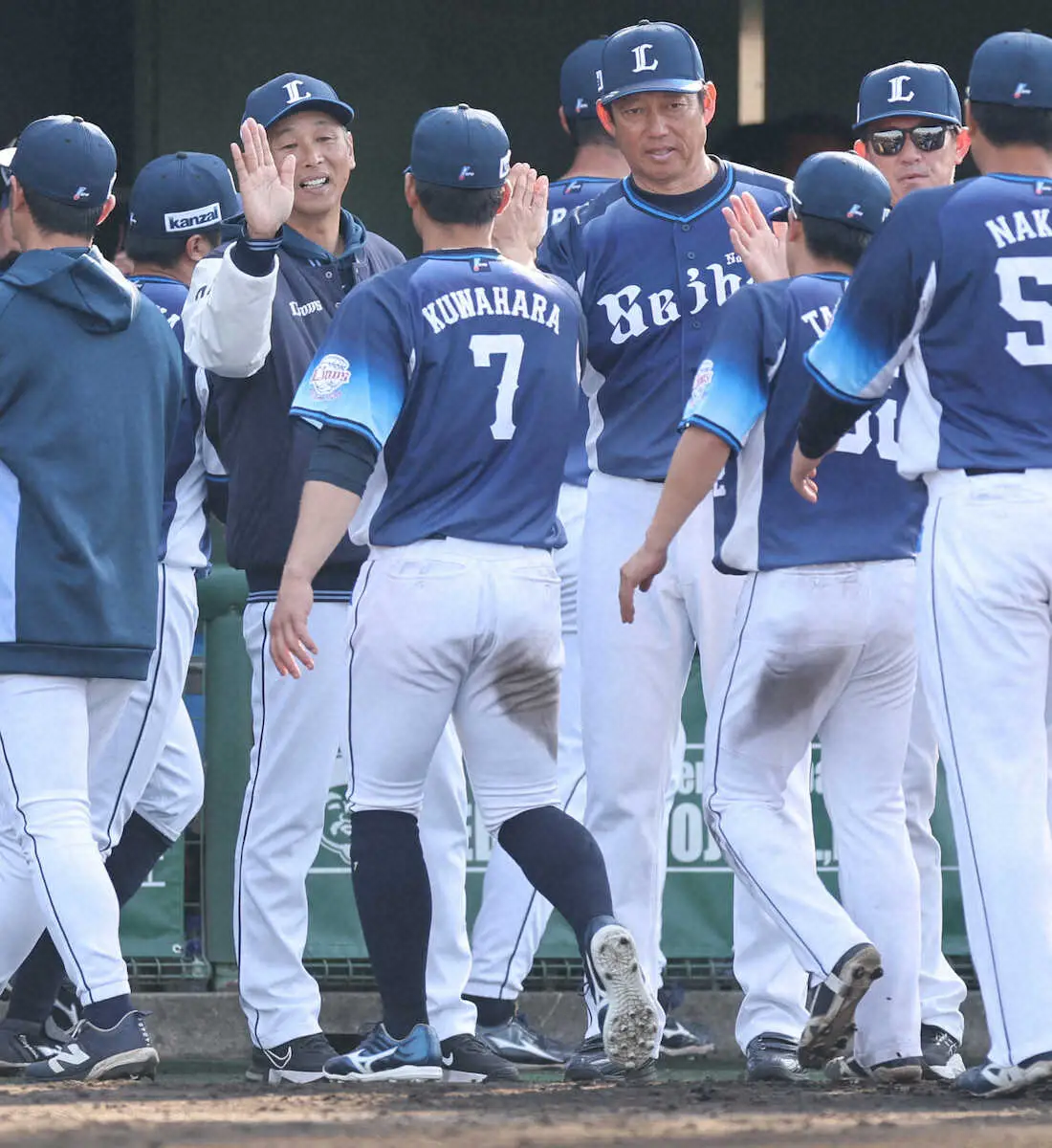 序盤から打線がつながり、2戦連続の2桁安打で10点を奪って快勝。西口監督は「開幕まで取っといてほしいぐらい。(好調で)怖い。それだけみんなしっかりバットを振れている」とほくほく顔だった。
