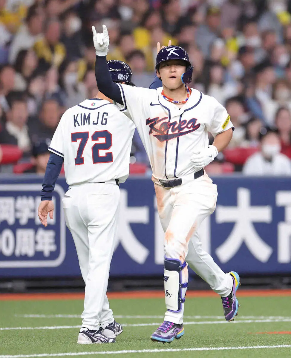 初回の第1打席では才木の直球にボテボテのゴロとなったが、幸いにも三塁への内野安打となり出塁。文保景(ムン・ボギョン)の中前適時打で先制のホームを踏んだ。2回の第2打席は三ゴロだった。