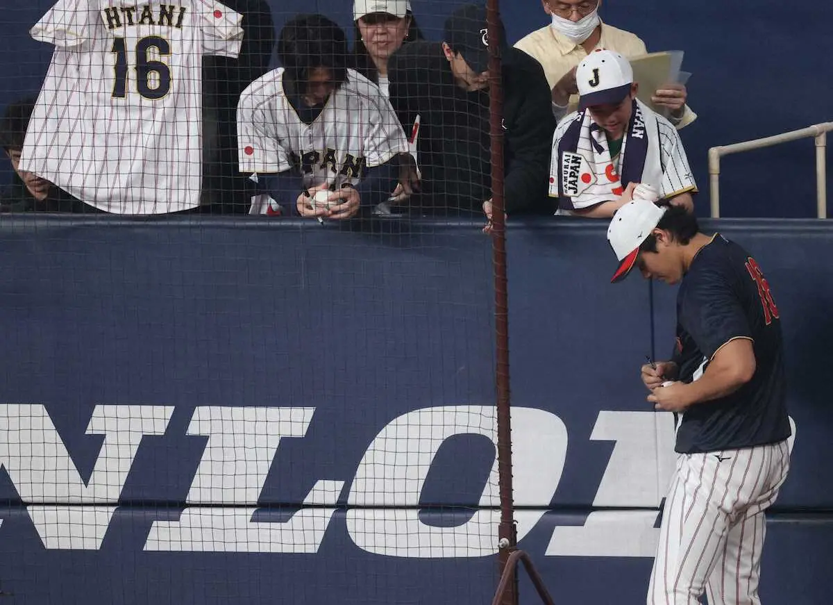 【侍ジャパン】大谷翔平が神対応 少年からのサインに応じる 球場からもどよめき起きる