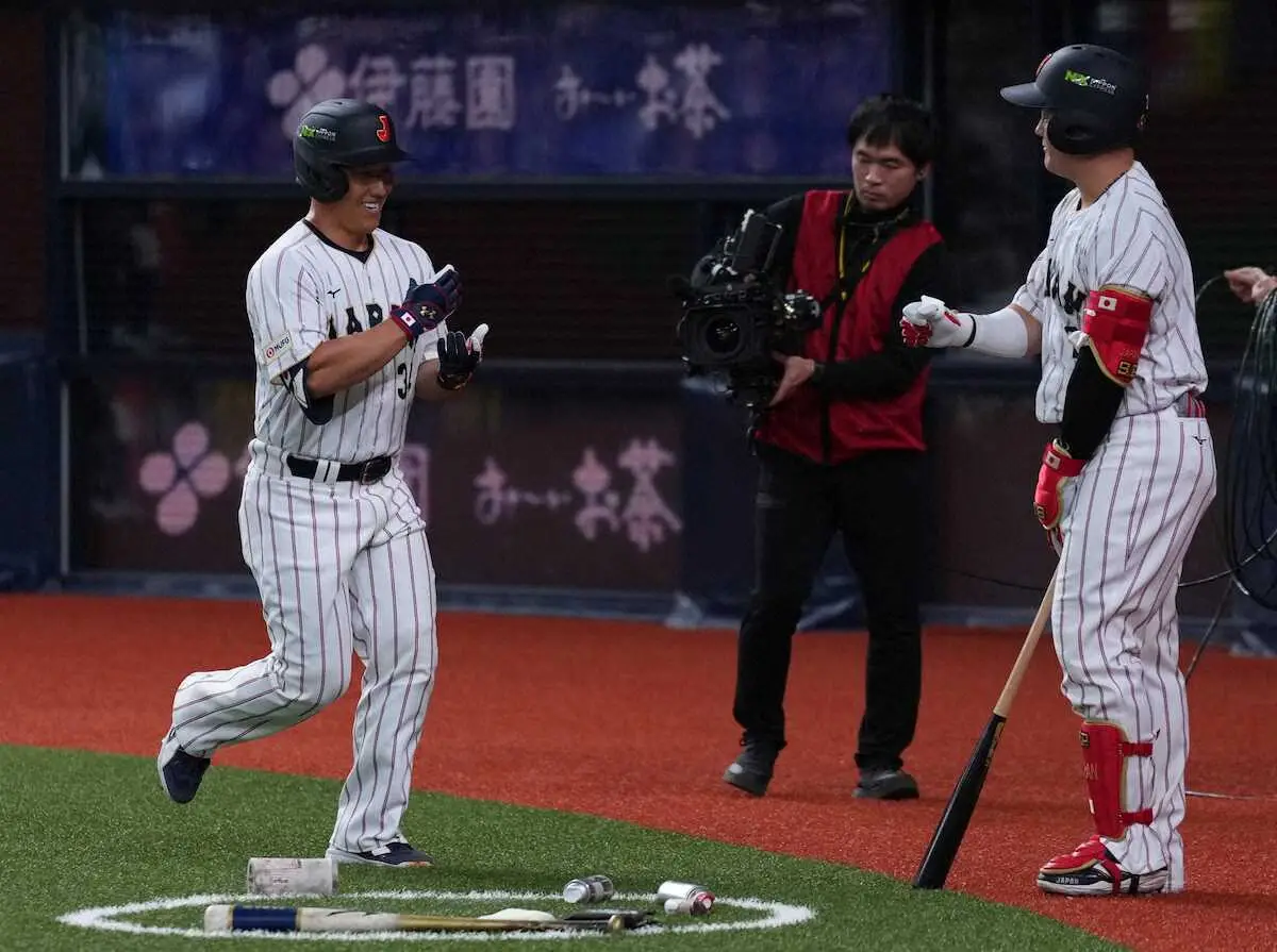 ホームイン後には、メジャーのオープン戦でブルージェイズの岡本和真が見せた“ごますりポーズ”に似たしぐさを見せニッコリ。ベンチでは大谷が両腕を突き上げ喜びを爆発させた。吉田は何かを擦(こす)るポーズ後に、何かを持って飲むポーズも。出迎えでは佐藤輝も同じポーズを見せた。その後、6回には代打・牧原も中前打を放った後に同じしぐさを披露した。前回23年大会では、ヌートバーが見せた“ペッパーミル”がメンバーに広がり侍ポーズに。岡本が海の向こうで見せたポーズも現地では“抹茶ポーズ”や“ワサビポーズ”と呼ばれている。今回吉田が見せた“お茶たてポーズ”“お抹茶ポーズ”が26年版侍ポーズとなるか注目だ。