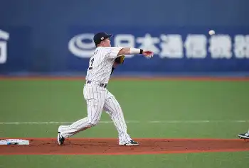 初回1死一、三塁の場面では三ゴロを三塁手・佐藤輝が二塁転送。これを二塁手の牧が一塁へ送球ミス。適時失策となった。