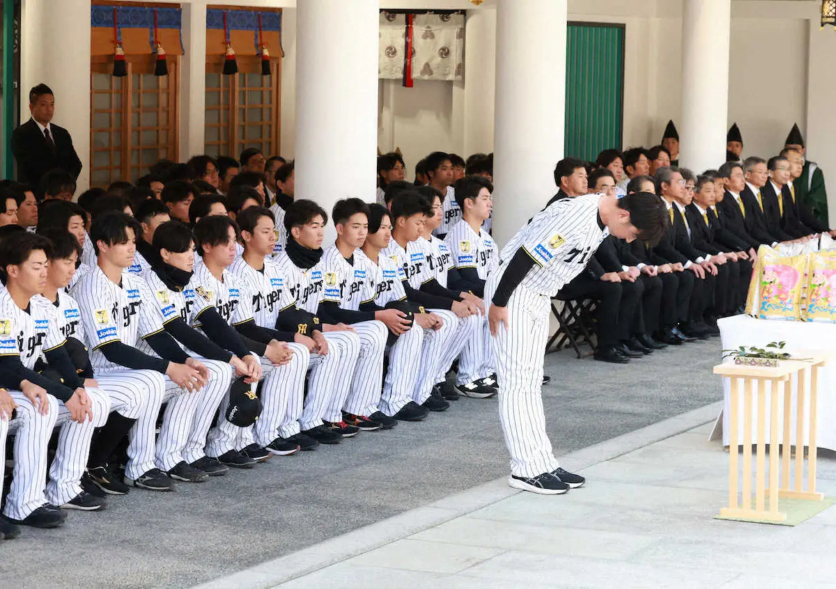 阪神は5日、藤川球児監督ら首脳陣、球団フロント、選手らが毎年恒例の必勝祈願で西宮市内の西宮神社を訪れた。