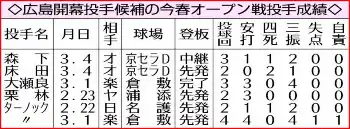 表・広島開幕投手候補の今春オープン戦投手成績 Photo by スポニチ 広島・新井監督“究極サバイバル”開幕投手&ローテ決定は3月中旬「誰が入っ… ギャラリーで見る この記事のフォト 2026年03月06日の画像一覧 もっと見る 2026年03月06日の画像をもっと見る