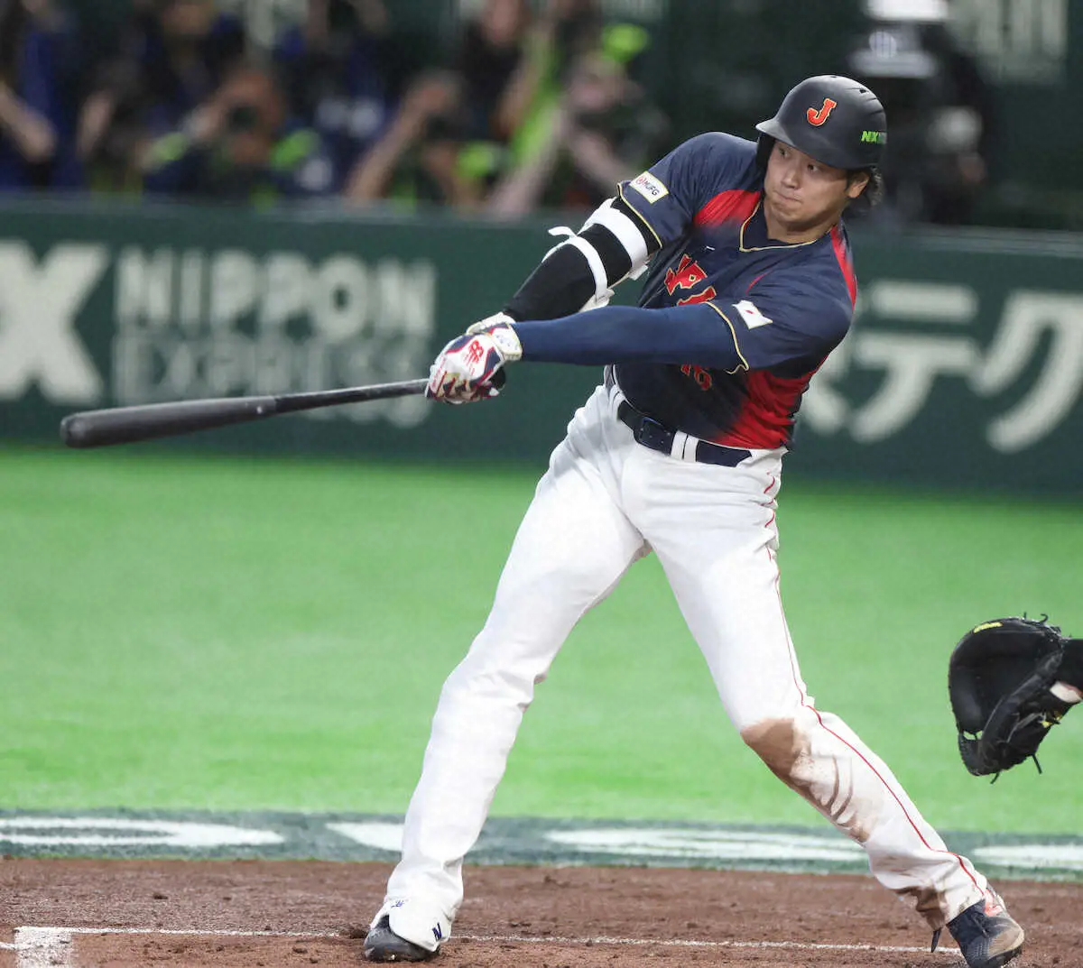 WBC1次R<日本・台湾>初回、大谷はいきなり二塁打を放つ(撮影・須田 麻祐子)