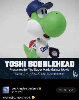 ドジャース・山本由伸 Photo by スポニチ ド軍・山本由伸が人気キャラクターとコラボボブルヘッド配布!ネット反響… ギャラリーで見る この記事のフォト 2026年03月07日の画像一覧 もっと見る 2026年03月07日の画像をもっと見る