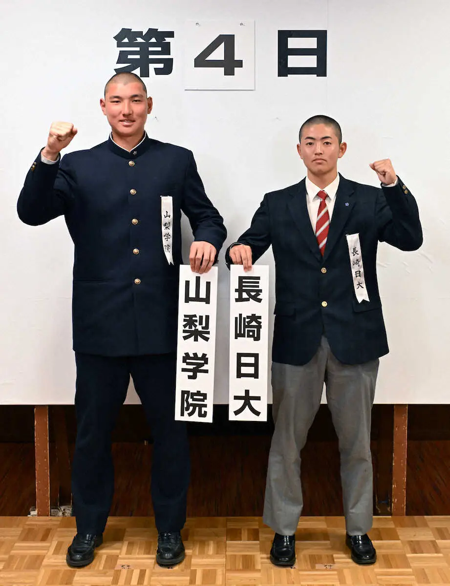 優勝候補の一角に挙がる山梨学院は、大会第4日の第3試合で長崎日大と初戦を戦う。今秋ドラフト1位候補の最速152キロの二刀流右腕・菰田陽生(こもだ・はるき)主将(3年)は「年末は長崎に合宿に行きましたし、(吉田洸二)監督さんの出身の長崎でもある。チーム全員で良い形で臨んで勝ちたいと思います」と意気込んだ。
