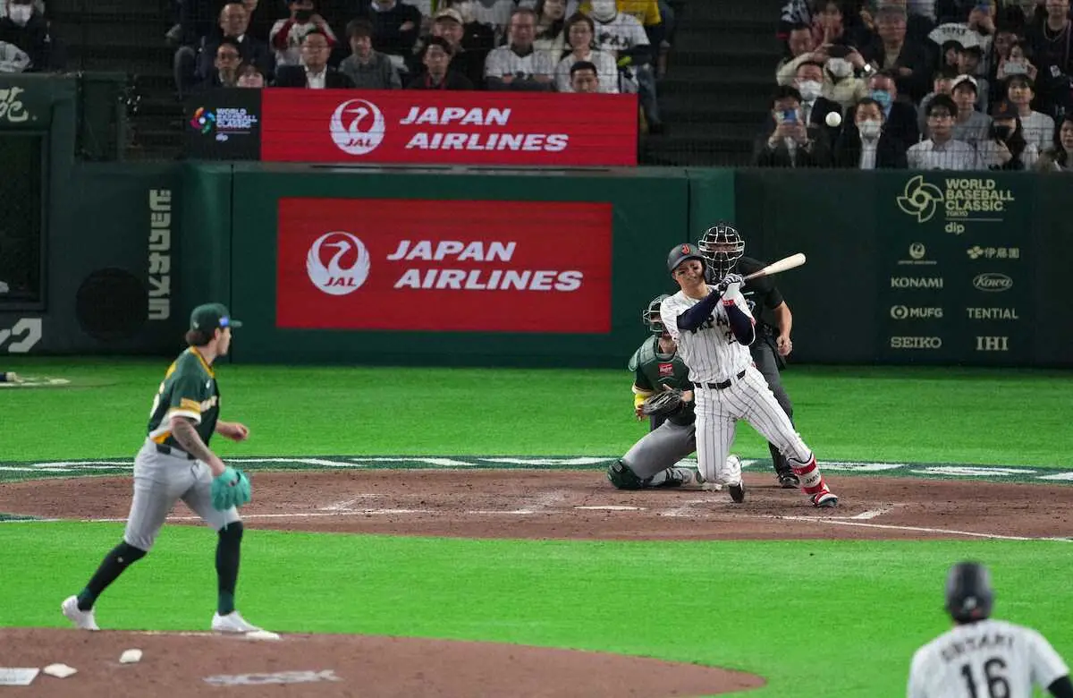 【侍ジャパン】佐藤輝明「点取りたい気持ちで」WBC初安打は代打適時二塁打 大谷からも「ナイス」