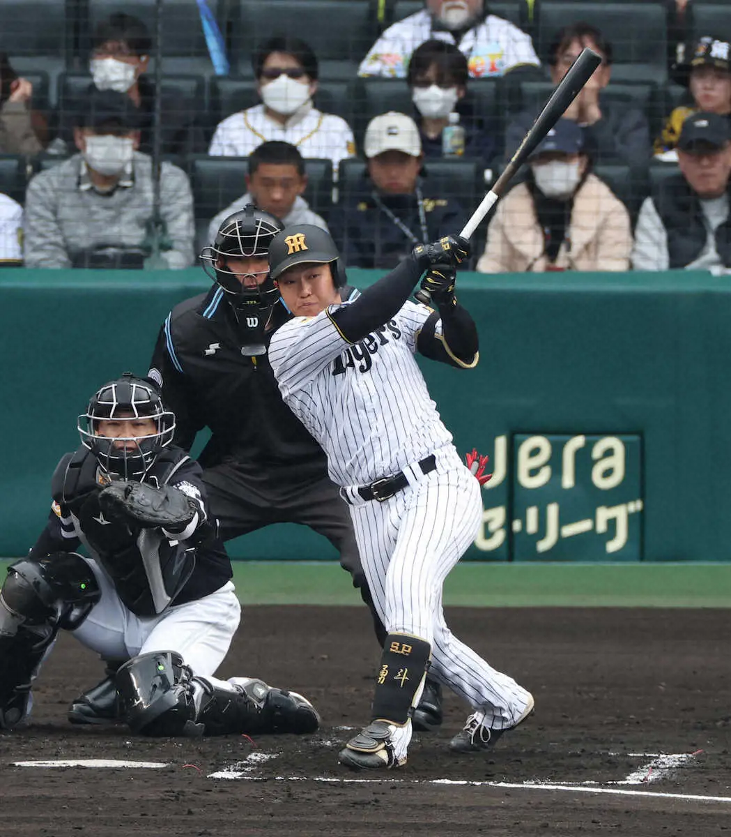 初回に1死二塁から左前適時打。カウント2―2から123キロカーブをゴロで三遊間を破った。「真っすぐがいいピッチャー。真っすぐを捉えきれなかったのが反省点」。2ボールから155キロ直球を連続で空振りしたことを悔い、結果オーライとはしなかった。「真っすぐを待っている時は一発で仕留められるように」。開幕左翼を狙う高卒5年目の22歳。結果的にこの1点が虎の子となって勝利を収めたが、その後の3打席に凡退したことにも満足していなかった。