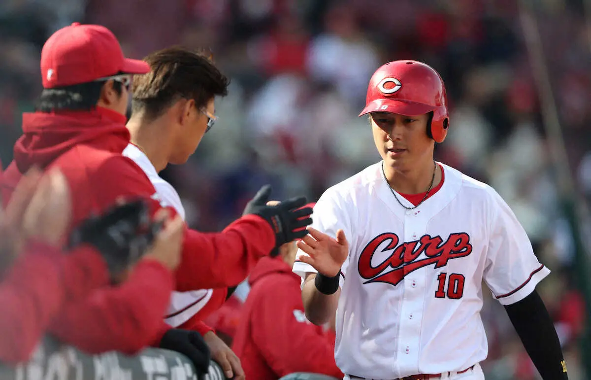 広島の2年目・佐々木泰が2安打。オープン戦6試合で3度目のマルチ安打をマークした。