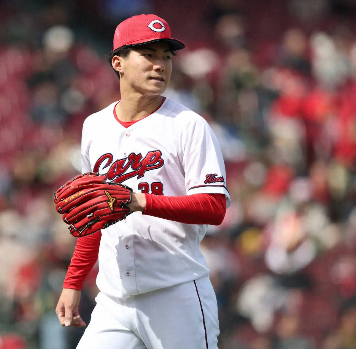 本拠地・マツダスタジアムでのデビュー戦。「スタンドから名前を多く呼ばれて、高ぶった」と声援を力に変えた。1メートル91の長身から伸びのある直球を勢い良く投げ込んだ。