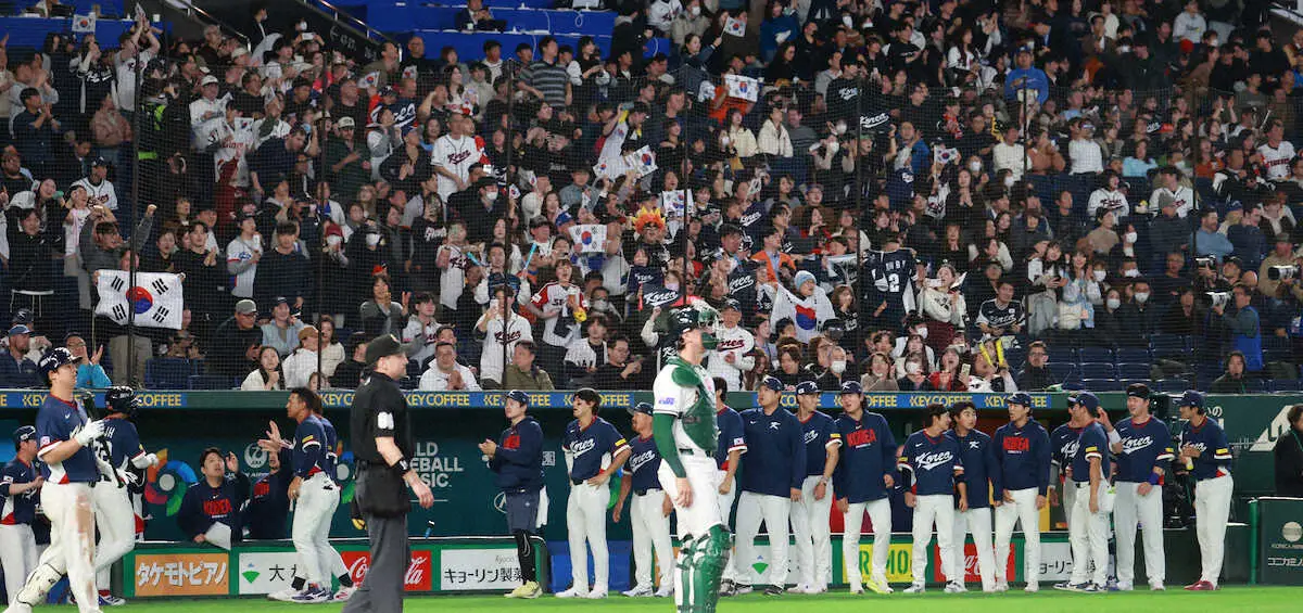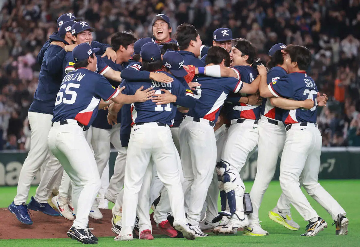 <オーストラリア・韓国>1次ラウンド突破を決め喜びを爆発させる韓国ナイン(撮影・篠原岳夫)