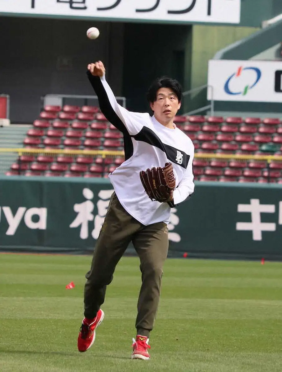 この日は3軍が休日で「肩は動かしておきたかった」と自主練習。5日の全体練習で痛めて「右下腿筋損傷」と診断され、8日から3軍でリハビリを開始していた。開幕は絶望ながら「右足でつま先立ちもできるし、大きなケガじゃない。ただ慌てて再発したら余計に長引く。気を付けながら、急いで…という気持ち」と早期復帰に意欲を示した。