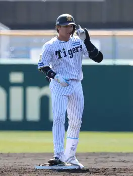 阪神ドラ3岡城快生が開幕1軍猛アピール 公式戦開幕前最後の甲子園で2点三塁打
