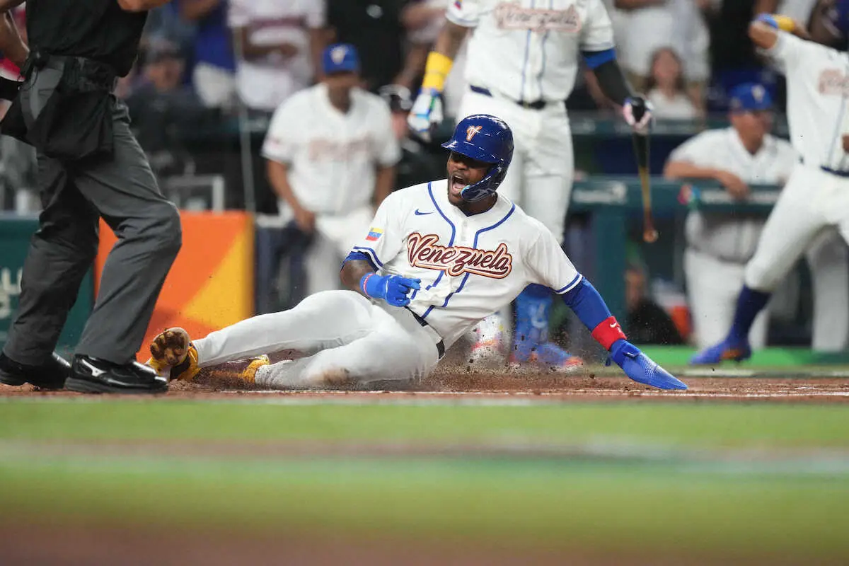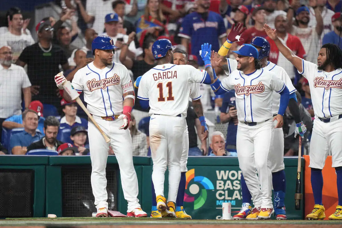 3回、適時二塁打を放ち、その後生還したガルシアを称えるベネズエラナイン(AP) Photo by AP 【侍ジャパン】準々決勝の相手はベネズエラに決定 ドミニカ共和国との全… ギャラリーで見る この記事のフォト 2026年03月12日の画像一覧 もっと見る 2026年03月12日の画像をもっと見る
