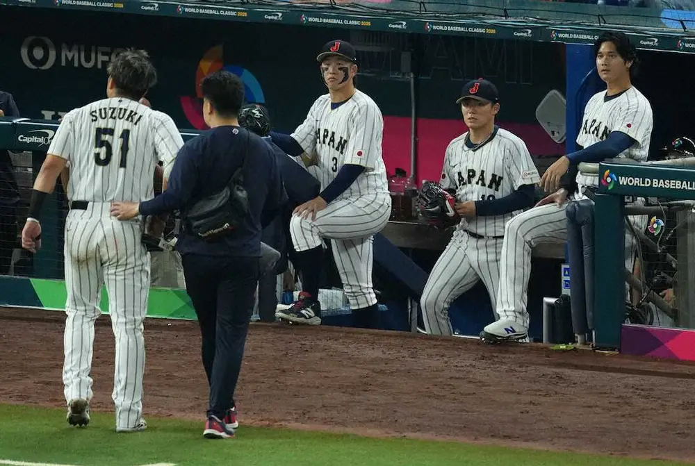 鈴木は初回、四球で出塁後に二盗を試みた際、右膝を痛め、足を引きずるようにしてベンチに戻り負傷交代した。大谷と鈴木は同学年で仲が良く、今大会も侍ジャパンの中心選手としてチームを盛り上げてきた。