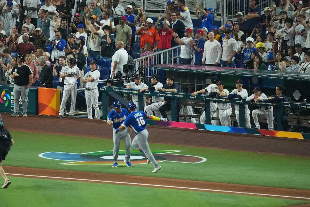 WBC準々決勝<日本・ベネズエラ>敗退が決まり、グラウンドを見つめる井端監督(中央)=撮影・木村 揚輔 Photo by スポニチ 8強敗退…井端弘和監督「負けたというのは現実。打つ方も投げる方も力をつ… ギャラリーで見る この記事のフォト 2026年03月15日の画像一覧 もっと見る 2026年03月15日の画像をもっと見る