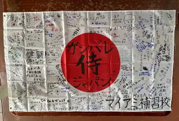 「マイアミ補習校」で侍ジャパン応援企画開催 日の丸に応援メッセージ記入