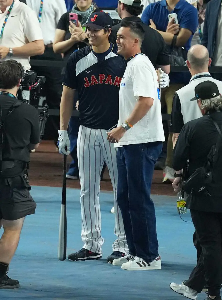 【侍ジャパン】カージナルス・ヌートバー ネトフリゲストで球場訪問 大谷とハグも