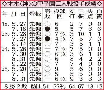 前回登板のヤクルト戦(甲子園)では8回3失点で今季2勝目。2度の5者連続を含む毎回の16奪三振でセ・リーグタイ記録の偉業を成し遂げた。