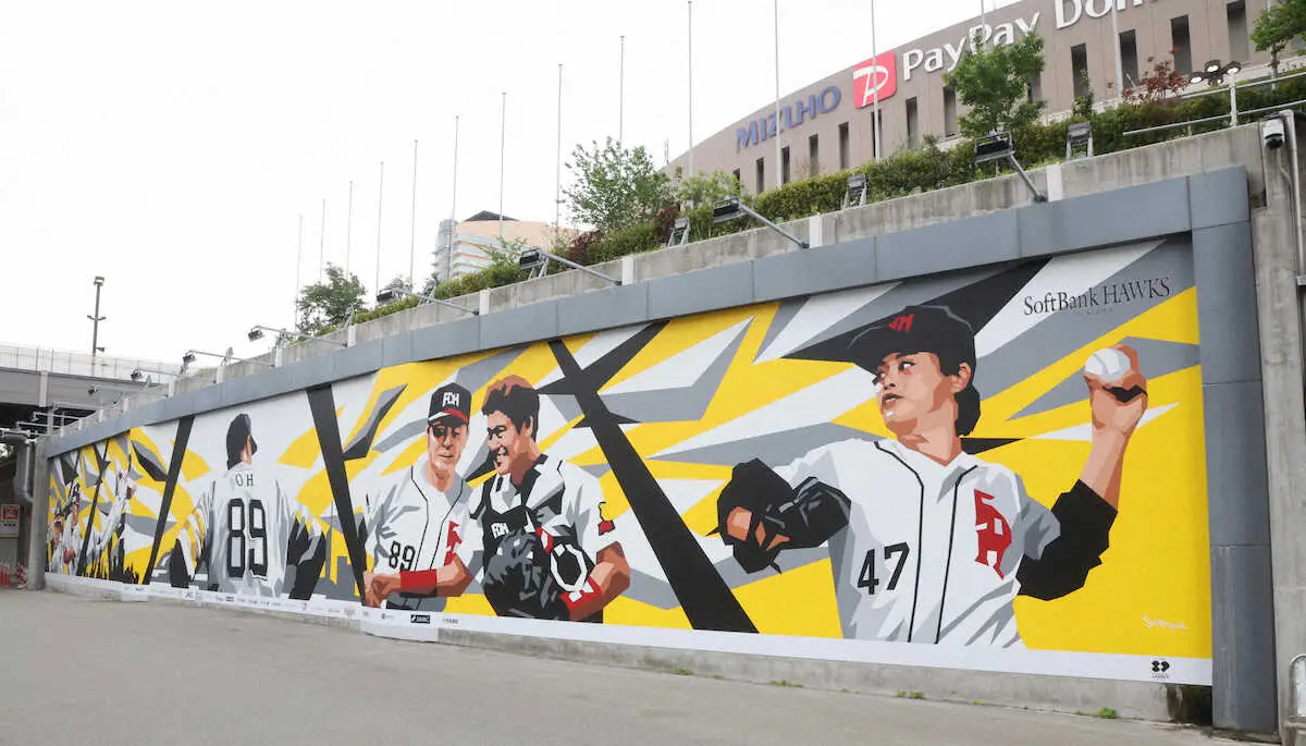 ソフトバンクの本拠地・みずほペイペイドームの外周に描かれた巨大ウォールアートが完成した。