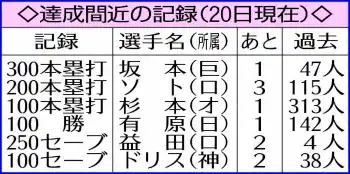日本ハム勢が達成すれば自身以来3年ぶり。前回は牧(D)、浅村(楽)との3人同日だったが、単独なら15年の中田翔以来11年ぶりとなる。万波は7日に26歳になったばかり。26歳シーズンまでに2度以上の達成となれば中西太(西鉄=53年20歳、55年22歳)、王貞治(巨=63年23歳、65年25歳、66年26歳)、村上宗隆(ヤ=21年21歳、24年24歳)に次ぐ4人目の快挙となる。