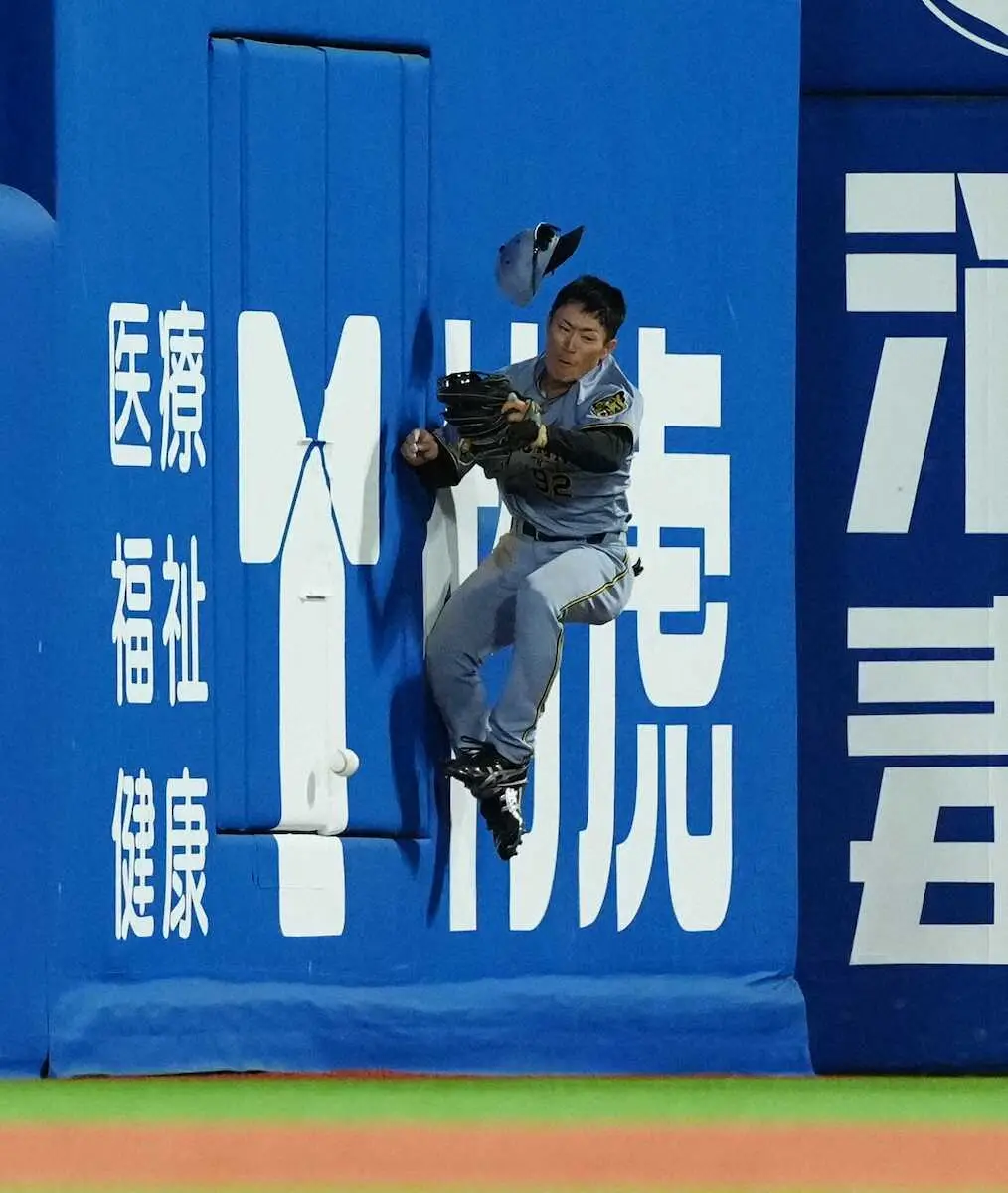 3回1死、DeNA・三森が放った左翼線への飛球を追い、ファウル地域のフェンスに激突。グラブにボールが触れるも、惜しくも好捕とはならずファウルとなった。藤川監督も心配そうにベンチから飛び出したが、すぐに立ち上がり無事をアピールした。