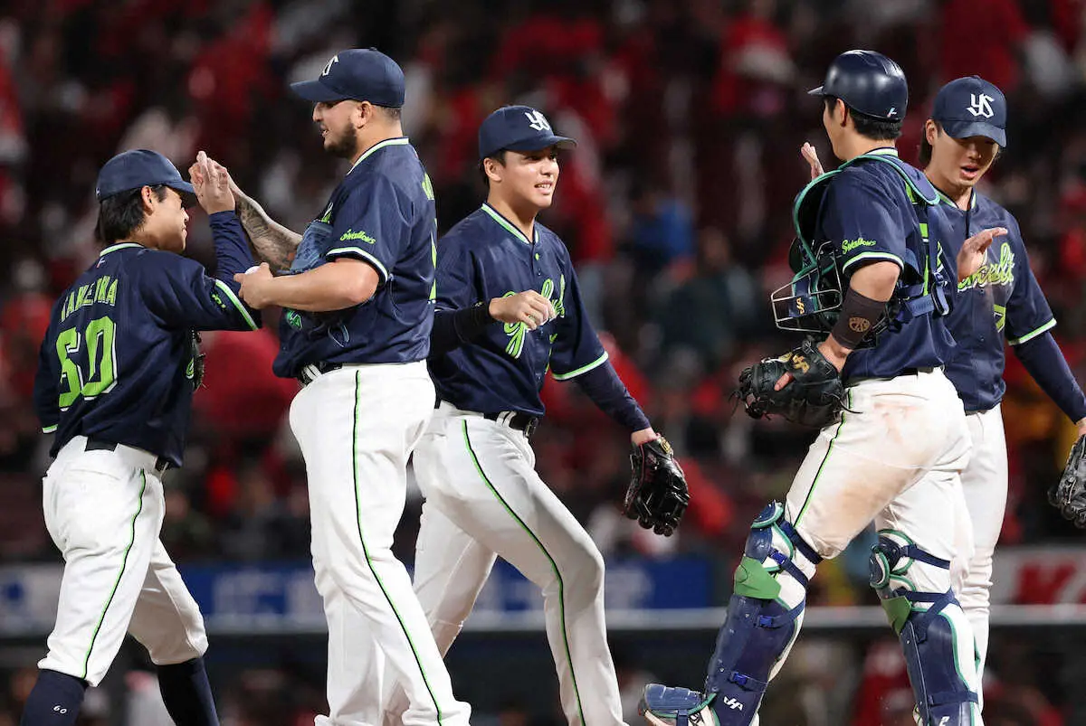 0―0の5回2死一塁からサンタナが9試合ぶりの右中間への5号2ラン。主導権を握ると、先発の高梨も悪天候の中、5回1/3を6安打無失点の力投。継投で逃げ切った。