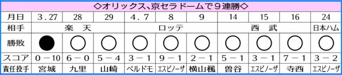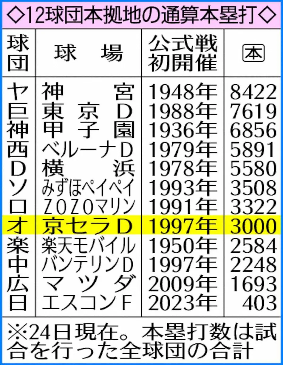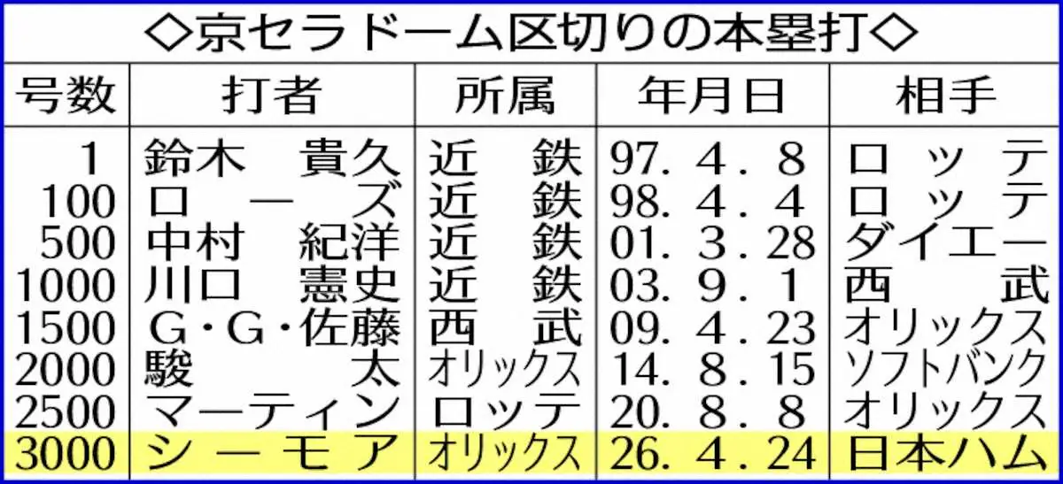 表・京セラD本塁打10傑 Photo by スポニチ オリックス シーモア弾で球団新の京セラドーム9連勝「喜びも爆発したよ」… ギャラリーで見る この記事のフォト 2026年04月25日の画像一覧 もっと見る 2026年04月25日の画像をもっと見る