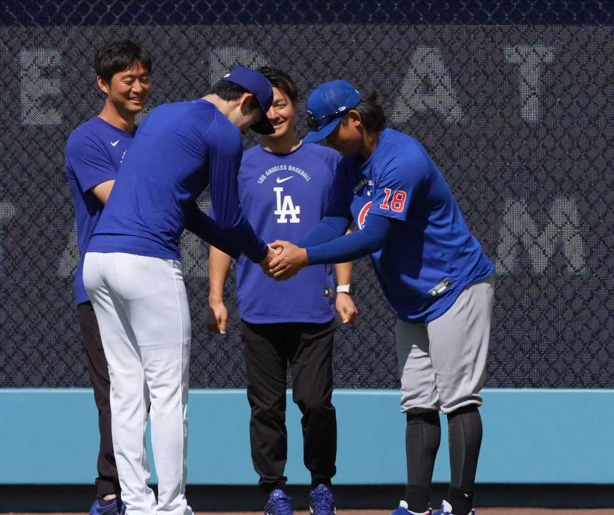 <ドジャース・カブス>談笑する佐々木(左)と今永(撮影・沢田 明徳) Photo by スポニチ 佐々木朗希が鈴木誠也&今永昇太と談笑 大谷翔平は「1番・DH」 侍集結の… ギャラリーで見る この記事のフォト 2026年04月25日の画像一覧 もっと見る 2026年04月25日の画像をもっと見る