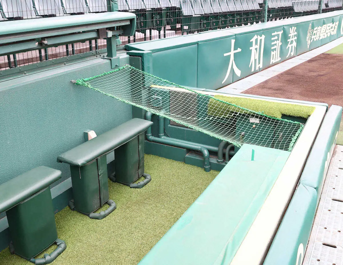 球場担当者によると、23日に暫定措置として、幅1メートルほどのネットを外野寄りのカメラマン席奥側に張った。担当者は「球場として同じケース、落下がないように暫定的な処置として取り急ぎできることをさせてもらった。もちろん完成形ではない」と説明。三塁を主戦場とする佐藤輝は「とりあえずの応急処置らしい。もうちょっと変わるらしいですけど」と話した。