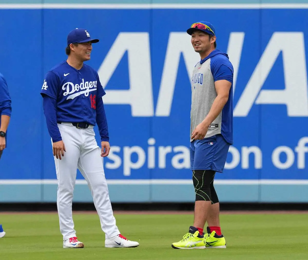 <ドジャース・カブス>談笑する今永(左)と山本(撮影・沢田 明徳) Photo by スポニチ ドジャース・山本由伸とカブス・今永昇太が投球談義?試合前に外野で10分… ギャラリーで見る この記事のフォト 2026年04月26日の画像一覧 もっと見る 2026年04月26日の画像をもっと見る
