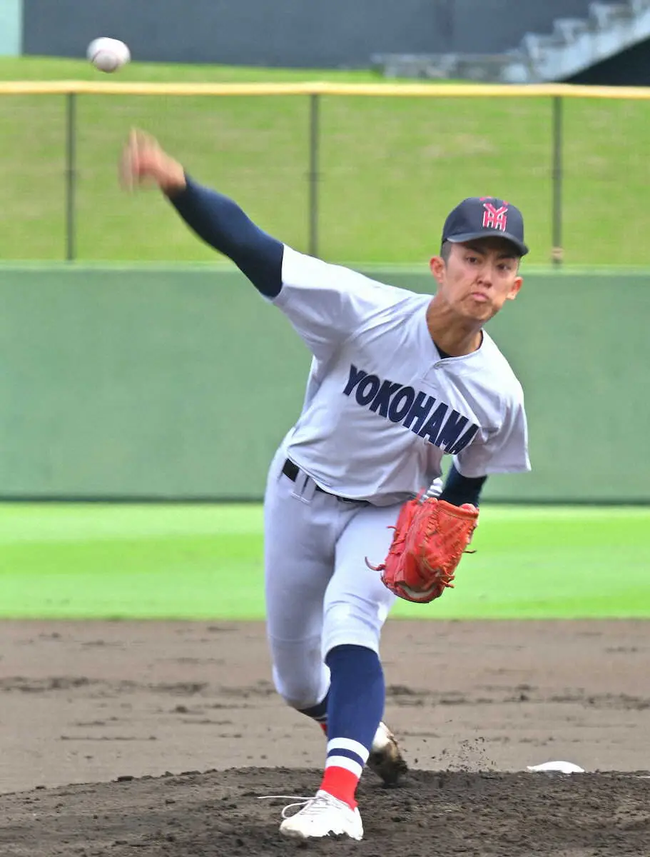 今秋ドラフト1位候補に挙がる横浜の最速154キロ右腕、織田翔希(3年)が公式戦では昨夏甲子園の津田学園(三重)との3回戦以来の完封で4強へ導いた。最速149キロの直球を軸に5安打に抑えて10奪三振。視察に訪れた楽天、DeNA、ドジャースなど日米5球団のスカウトの前で好投し「全く疲れは感じなかった」と晴れやかな表情を見せた。