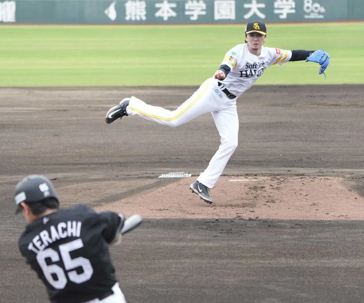 熊本では日本ハム時代の19年以来7年ぶり2度目の登板。初回を9球で3者凡退に抑えるも続く2回にリズムが狂った。2死一、二塁から佐藤に投じた初球ツーシームが真ん中に入って先制の3ランとなる。なおも2死二塁で藤原にチェンジアップを右翼線に運ばれて4点目を失った。「あのイニングに集中されてしまいました」と4失点の悪夢に首をかしげ、小久保監督は「前半が痛かったね」とつぶやいた。