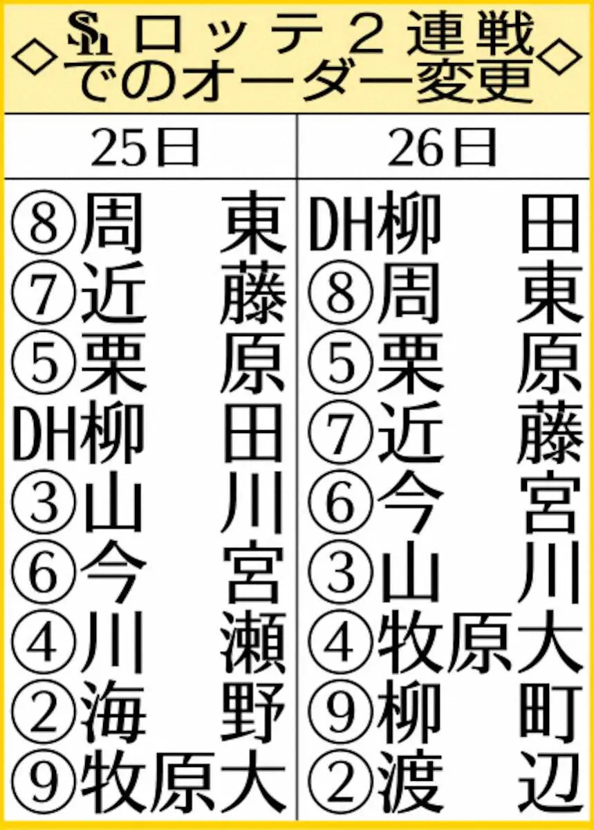 ソフトバンク―ロッテ戦のスタメン Photo by スポニチ ソフトバンク 4番・近藤の新打線 降雨ノーゲームも長谷川コーチ「4番を… ギャラリーで見る この記事のフォト 2026年04月27日の画像一覧 もっと見る 2026年04月27日の画像をもっと見る