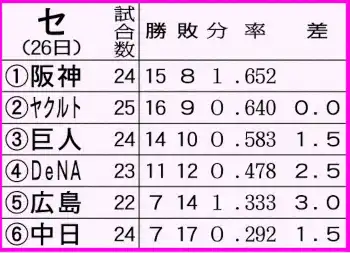 セ・リーグ 阪神1―0広島 ( 2026年4月26日 甲子園 )