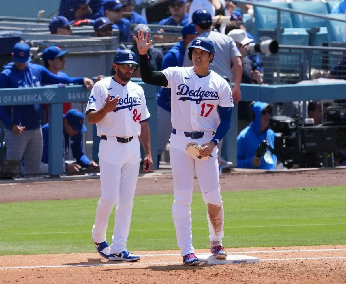 0-3の5回1死で大谷が第3打席を迎え、今永から右翼線に二塁打。この打球を処理した鈴木が二塁へ送球すると、二塁ベースに滑り込んだ大谷は立ち上がり、鈴木に向けて右手を向けて「あいさつ」した。