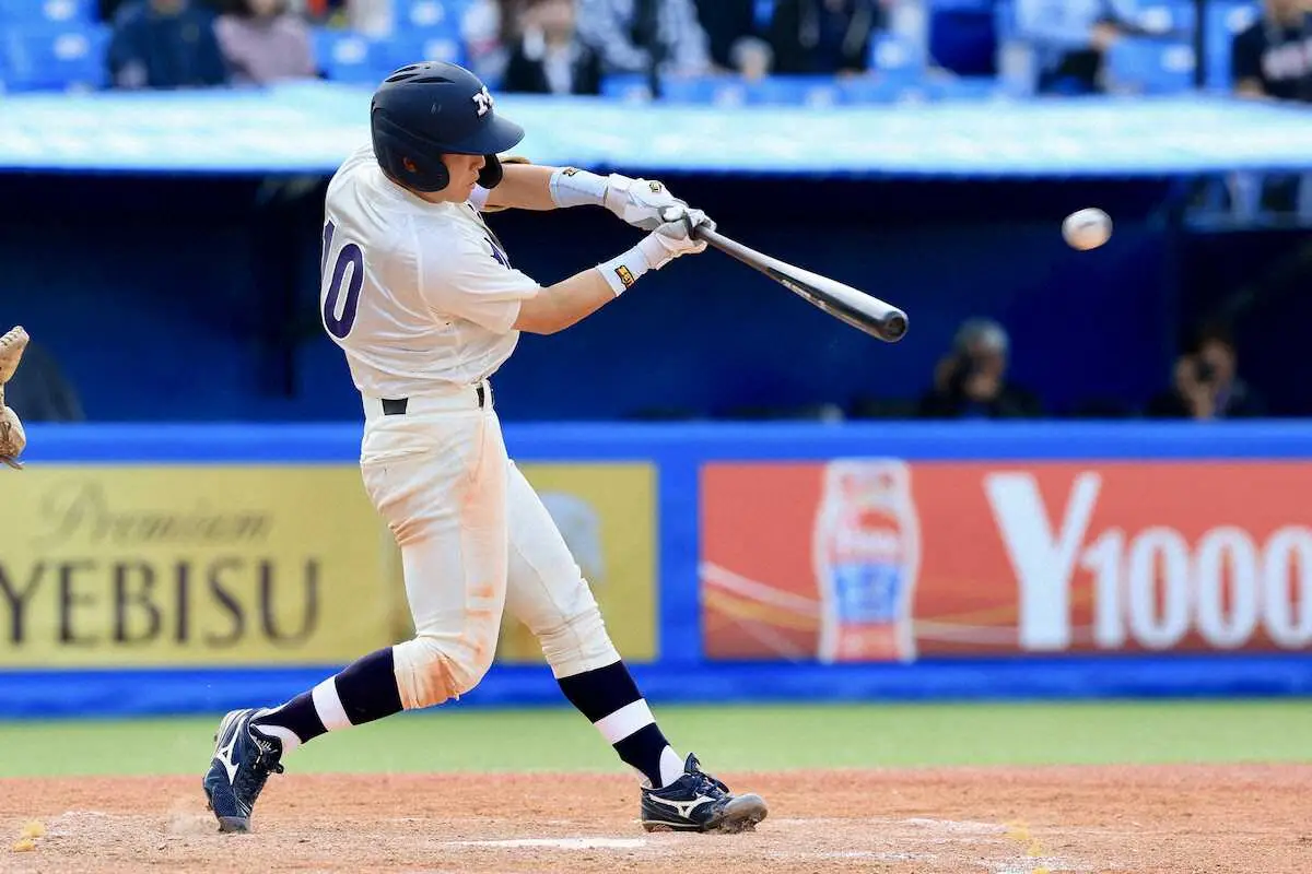 明大は初回に3点を先行して主導権を握り、13安打8得点で快勝した。「5番・捕手」で出場した福原は初回と5回に適時打を放ち、2安打4打点で貢献。目下リーグ1位の打率・500の好調で打線をけん引する主将は「いい状態が続いている。(1回戦の)リベンジを果たせるように準備していきたい」と、27日の3回戦を見据えた。
