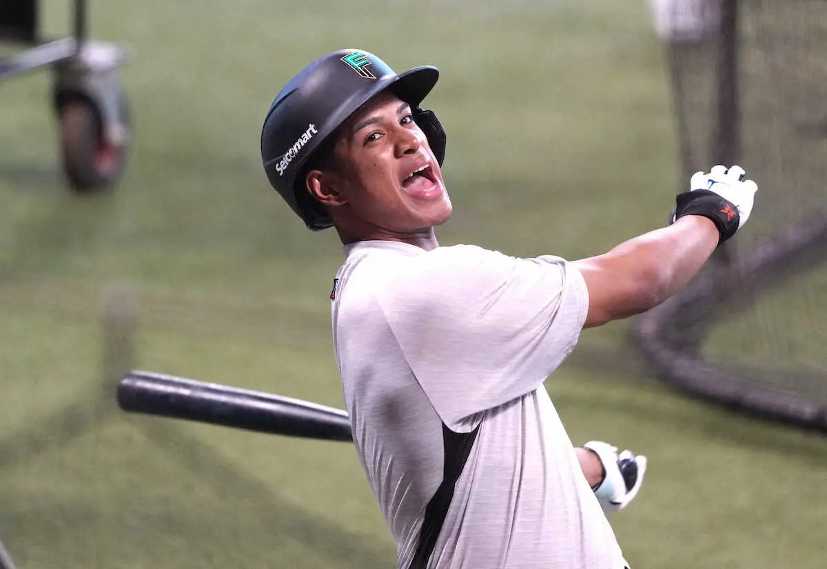 日本ハム・万波 オフから横尾俊建打撃コーチと取り組む「Be beast打法」でより強く、速い打球を